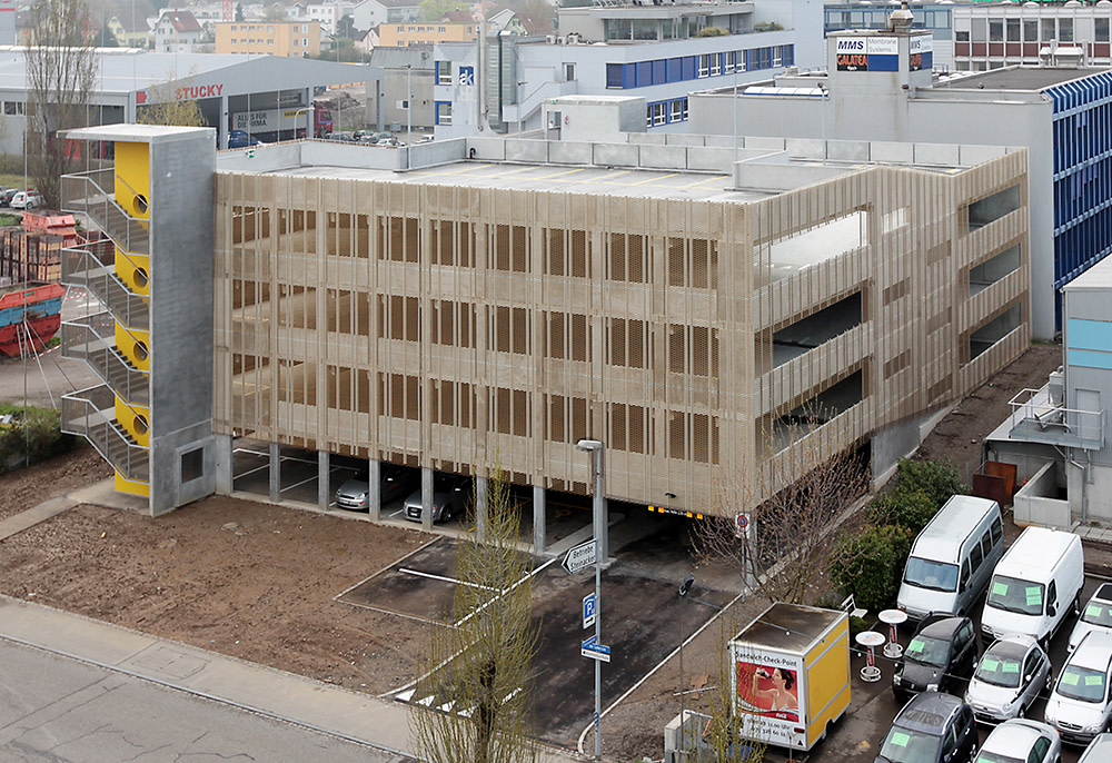 Gewerberäume lassen sich besser vermieten wenn auch ein Parkplatzangebot zur Verfügung steht. Das erkannte die Brütsch/Rüegger-Gruppe, Grosszulieferer für das Bau- und Baunebengewerbe, nachdem sie wegen Platzmangels an die Heinrich Stutz-Strasse 20 in Urdorf Nord umgezogen war und die selbstgenutzten Räume in ihrem Geschäftshaus in der Luberzen 1 vermieten wollte. Mit dem Bau eines Parkhauses auf einer Reserveparzelle konnten die Parkplatzbedürfnisse künftiger Mieter erfüllt werden. Der Bau des Parkhauses wurde als GU-Auftrag ausgeschrieben und aufgrund des überzeugenden Konzepts an die MÜLLER-STEINAG ELEMENT AG erteilt.