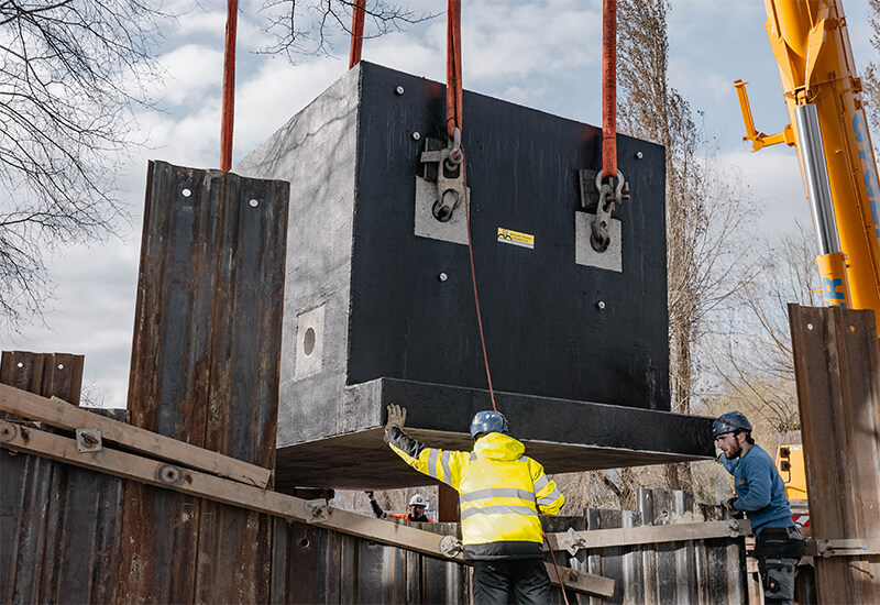 Die Vorfabrikation ermöglicht die Herstellung von Schächten mit integrierten Anschlüssen, Einbauteilen, Aussparungen oder ausgebildetem Gerinne. Dadurch entsteht eine qualitativ hochwertige, montagefertige Lösung ab Werk.